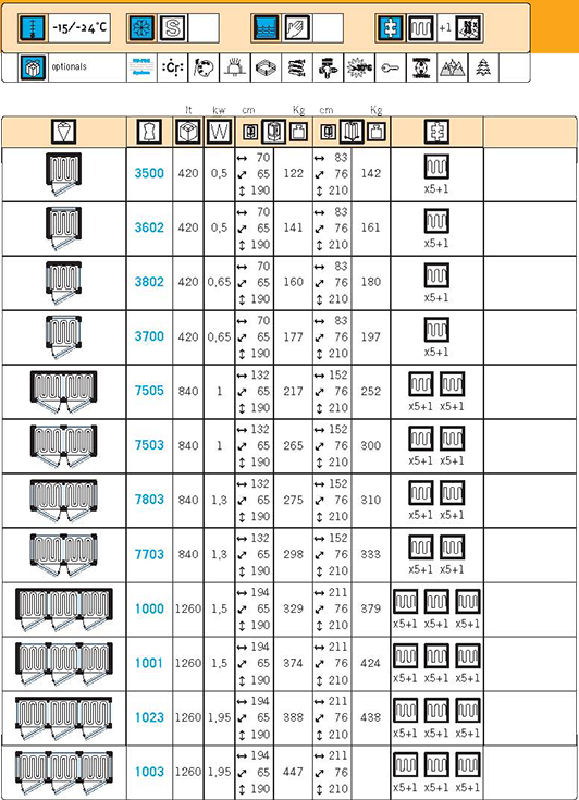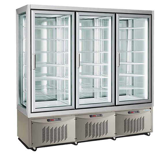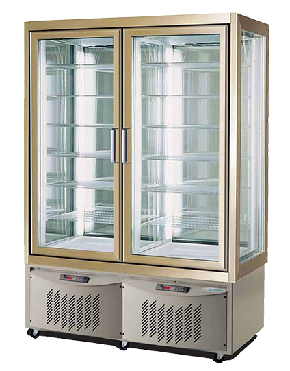 Βιτρίνες στατικής ψύξης Ιταλικής προέλευσης, εξαιρετικής ποιότητας, σύμφωνα με τις προβλεπόμενες από την Ε.Ε. προδιαγραφές ποιότητας, ασφάλειας και υγιεινής, με μόνο στην πόρτα ή και στις 4 πλευρές κρύσταλλα.